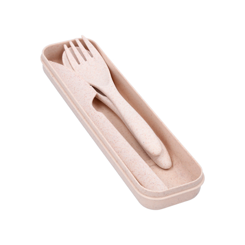 Set de cubiertos de wheat straw (fibra de trigo). Incluye cuchara, tenedor y cuchillo.