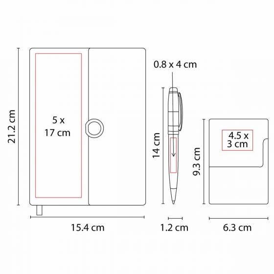 | Medida | 15.4 x 21.2 cm Libreta / 1.2 x 14 cm Bolígrafo / 6.3 x 9.3 cm Tarjetero |