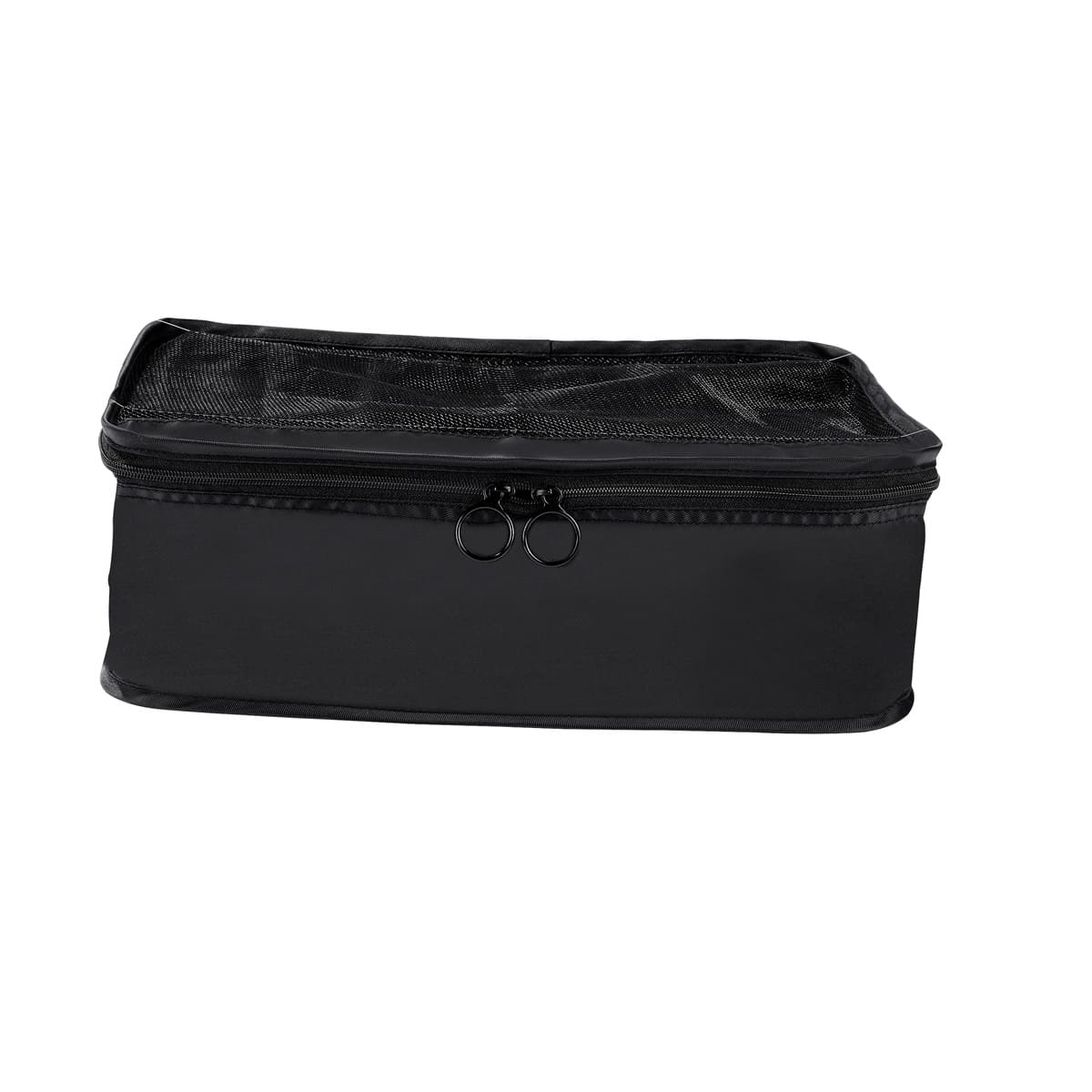 Organizador de maleta 8 en 1. Incluye 3 bolsas para ropa con malla para una mejor ventilación, la bolsa grande y mediana incluyen dos sujetadores interiores con broche de plástico para organizar tus artículos, además de broches de plástico que te permiten unir las diferentes piezas, 1 bolsa con cierre y asa para ropa interior, 1 bolsa con cierre para calzado, 1 bolsa con cierre tipo jareta, 1 bolsa chica con cierre y 1 bolsa cosmetiquera con malla.