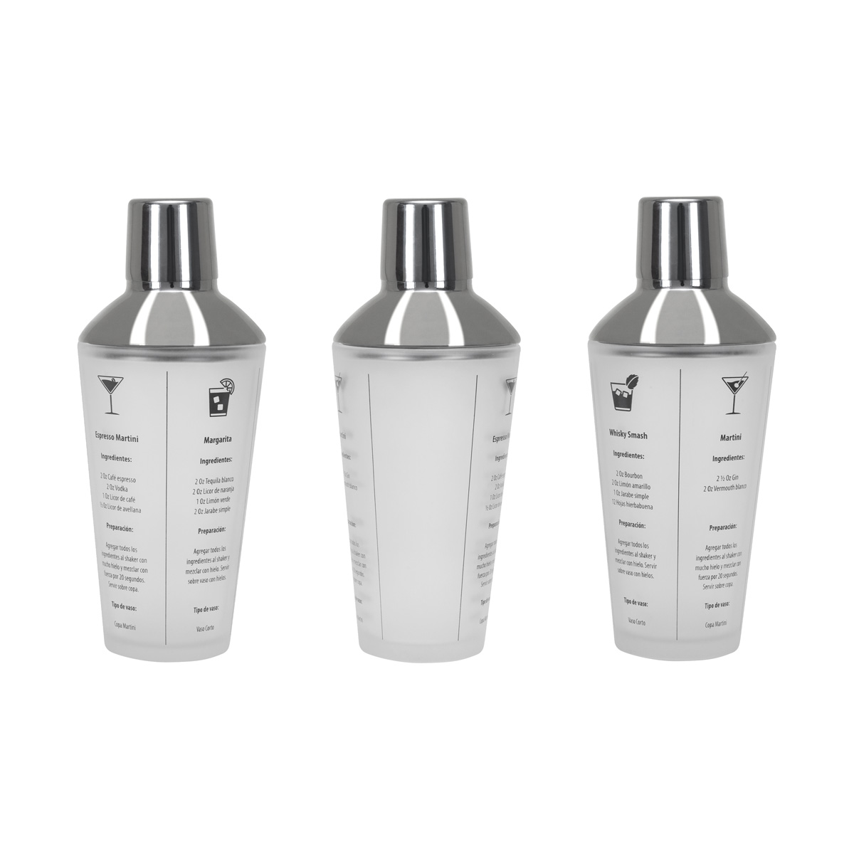 Shaker de cristal con 4 recetas incluidas. Conviértete en el barman perfecto con este shaker diseñado para facilitar la preparación de cócteles profesionales en casa, guiándote paso a paso para crear bebidas como un experto. Podrás preparar un expresso martini, margarita, whisky smash o martini. Incluye caja individual.