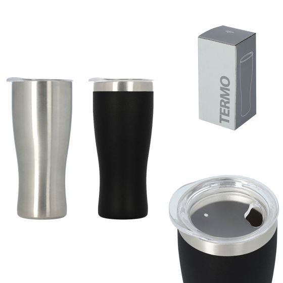 Doble pared. Cerrado al vacío. Pared interna y externa acero inoxidable.