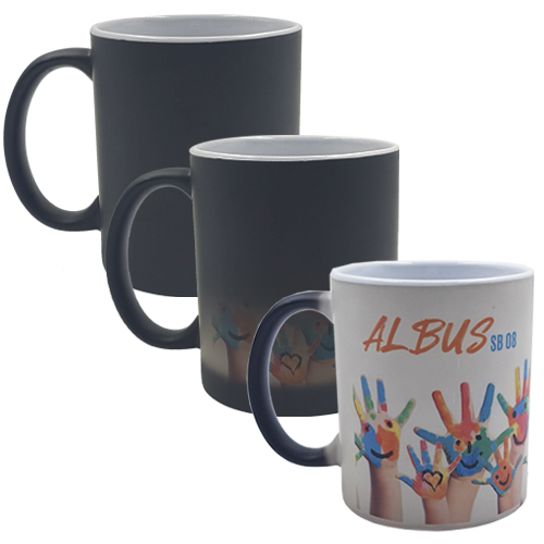 Taza mágica de cerámica para sublimación con terminado mate, que con agua caliente cambia de color.