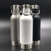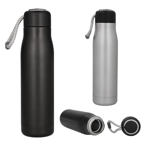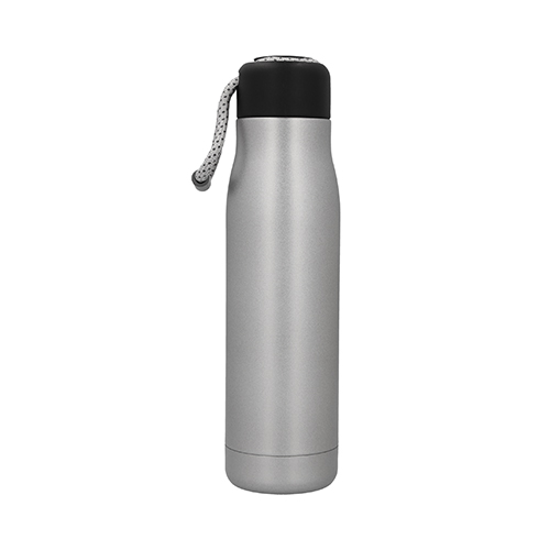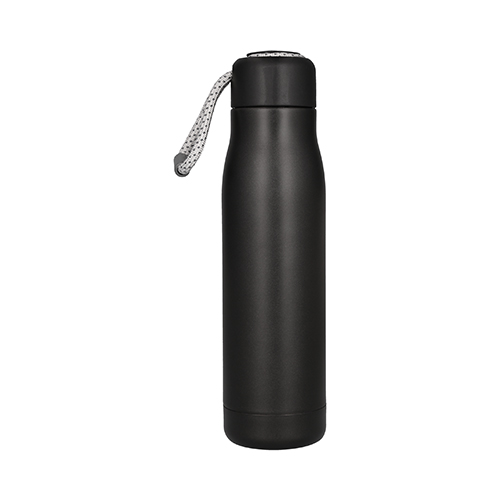 Termo con doble pared de acero inoxidable, con tapa enroscable plástica y correa de poliéster.