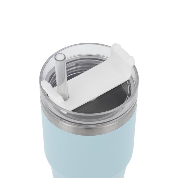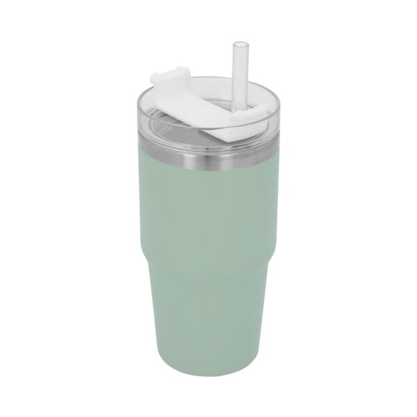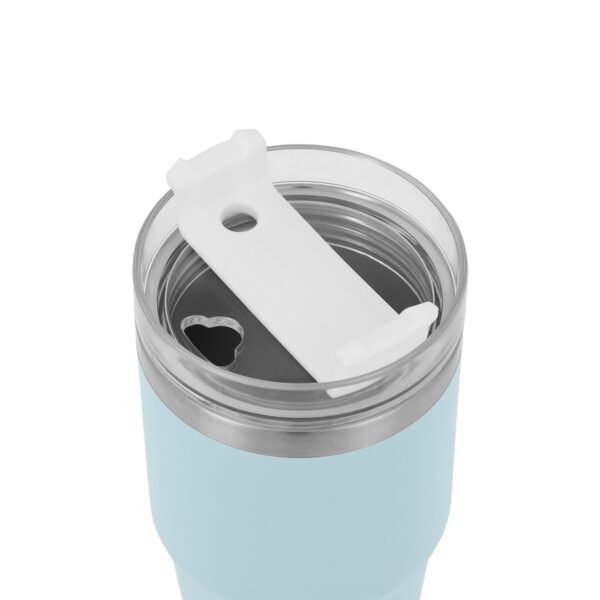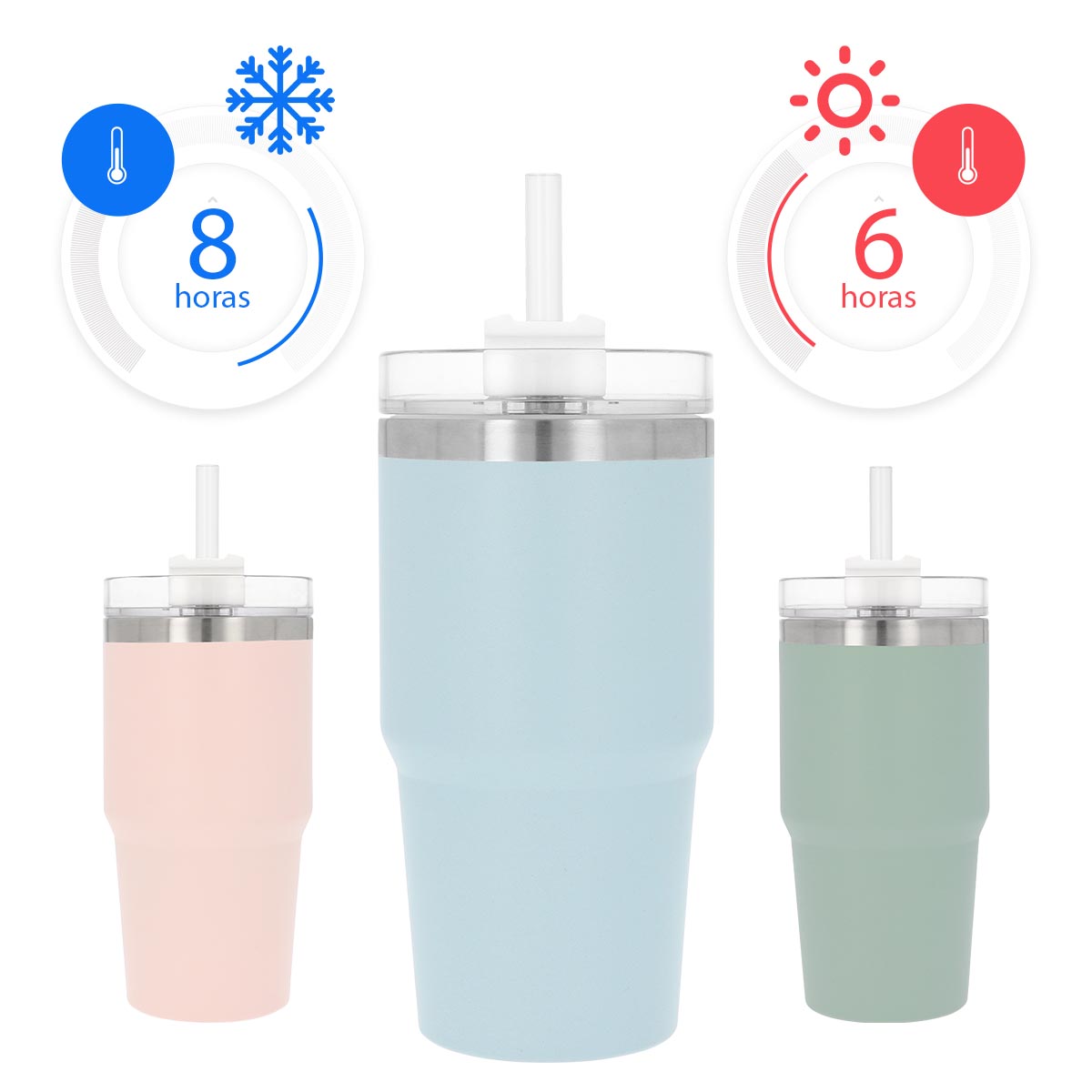 Doble pared. Cerrado al vacío. Pared interna y externa acero inoxidable. Recubrimiento en terminado tipo rugoso. Incluye popote y tapa de plástico con tres posiciones. Mantiene temperatura caliente 6 hrs y temperatura fría 8 hrs aproximadamente. Incluye caja individual.