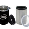 Termo metálico de diseño ergonómico, acabado en color mate negro. Cuenta con cubierta protectora de silicón en color, diseñada con diferentes tamaños y formas de tipografías en realce. Interior en acero inoxidable, tapa de rosca hermética y seguro para líquidos con bisagra en color. CAP. 400 ml. Presentación: caja en color blanco.