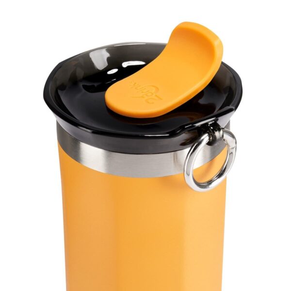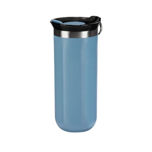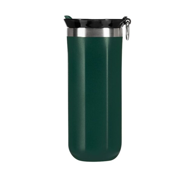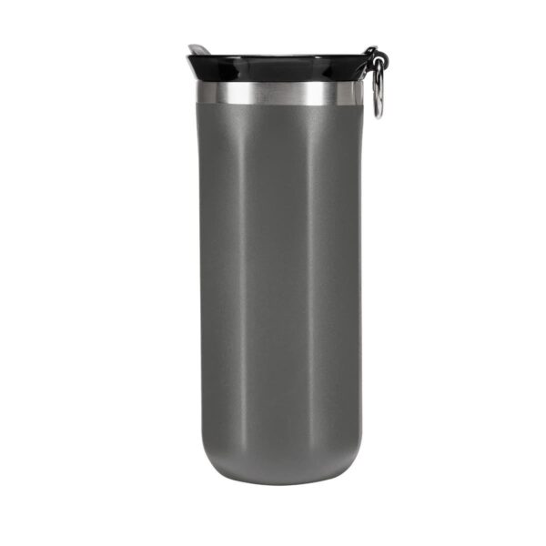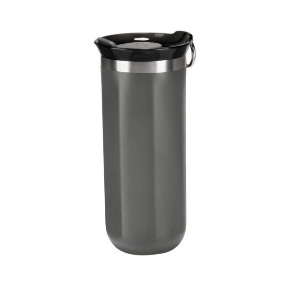 Doble pared. Cerrado al vacío. Pared interna y externa de acero inoxidable. Tapa con sistema de rosca, sobretapa de silicón y aro metálico removible. Mantiene temperatura caliente 6 hrs y temperatura fría 8 hrs aproximadamente. Incluye caja individual.