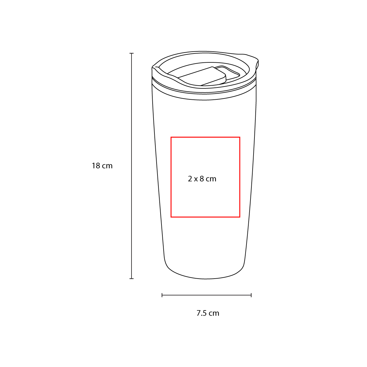 Doble pared. Pared interior plástico, pared exterior acero inoxidable. Incluye tapa de plástico con válvula de seguridad. Incluye caja individual.