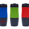 Termo metálico con diseño ergonómico, con acabado en esmalte blanco y banda superior de silicón en color. Cuenta con interior en acero inoxidable, tapa de rosca hermética, seguro para líquidos con bisagra en color y goma antiderrapante en la base. CAP. 400 ml. Presentación: caja en color blanco.